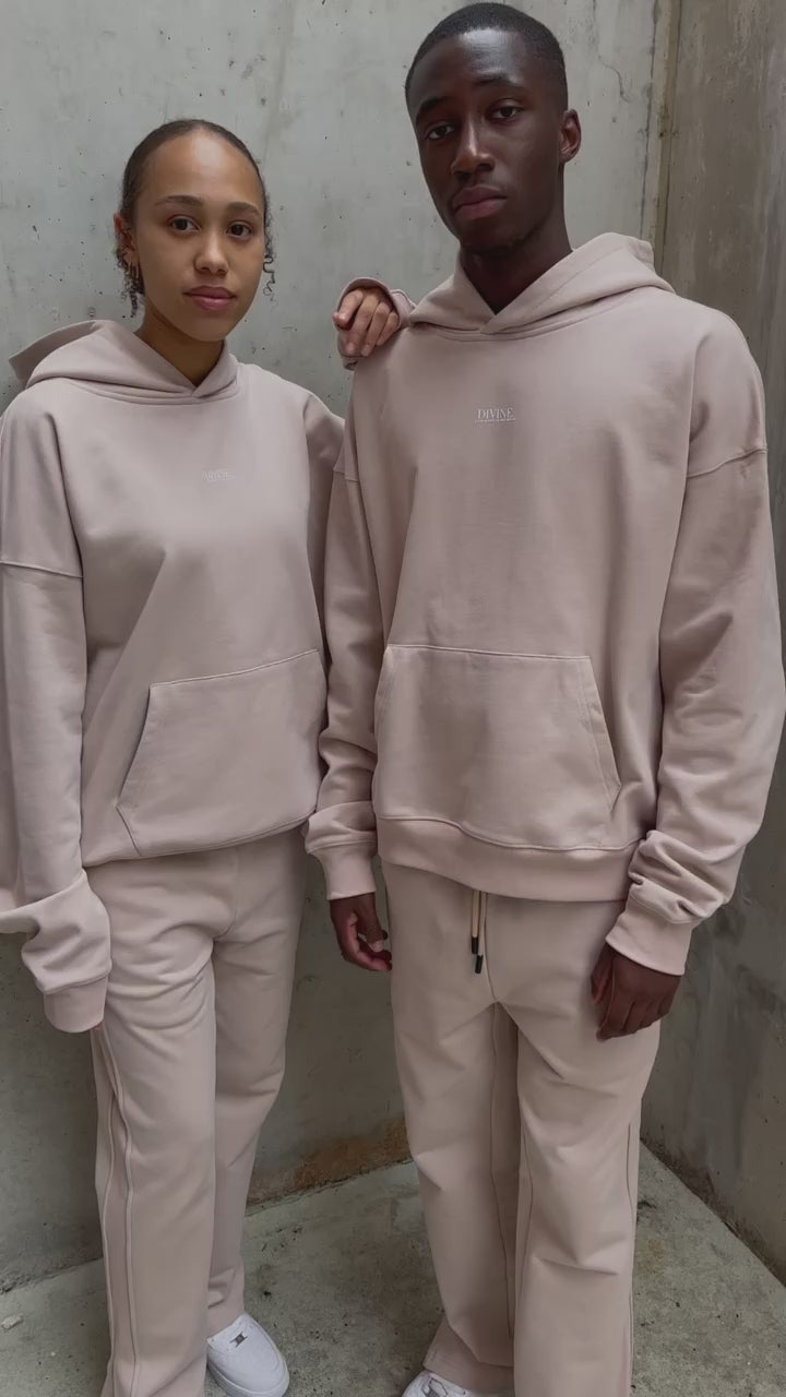 Genesis Sweatpants in Dust, hergestellt aus unserem 450 GSM PREMIUM Baumwollen Stoff.Auf der Vorderseite mit unserem "Divine. Logo" Design als hochwertigen und langlebigen Screenprint.